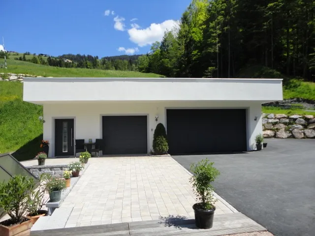 Natürlich von der Optik passend zu Ihren Garagentoren und der Hausfassade.